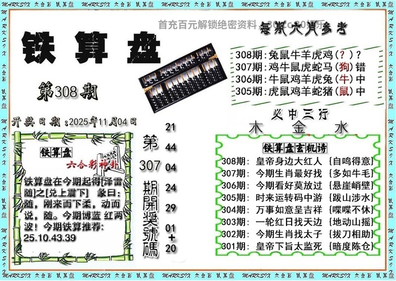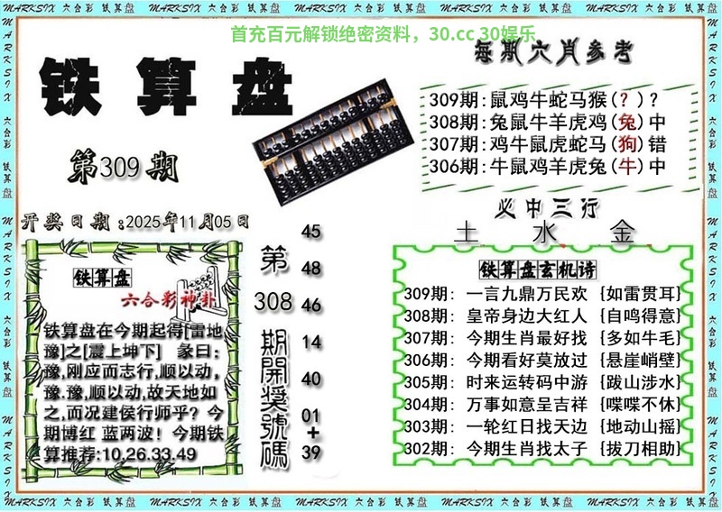 308期:九肖(马牛蛇猪鸡羊鼠虎狗)开:兔39错